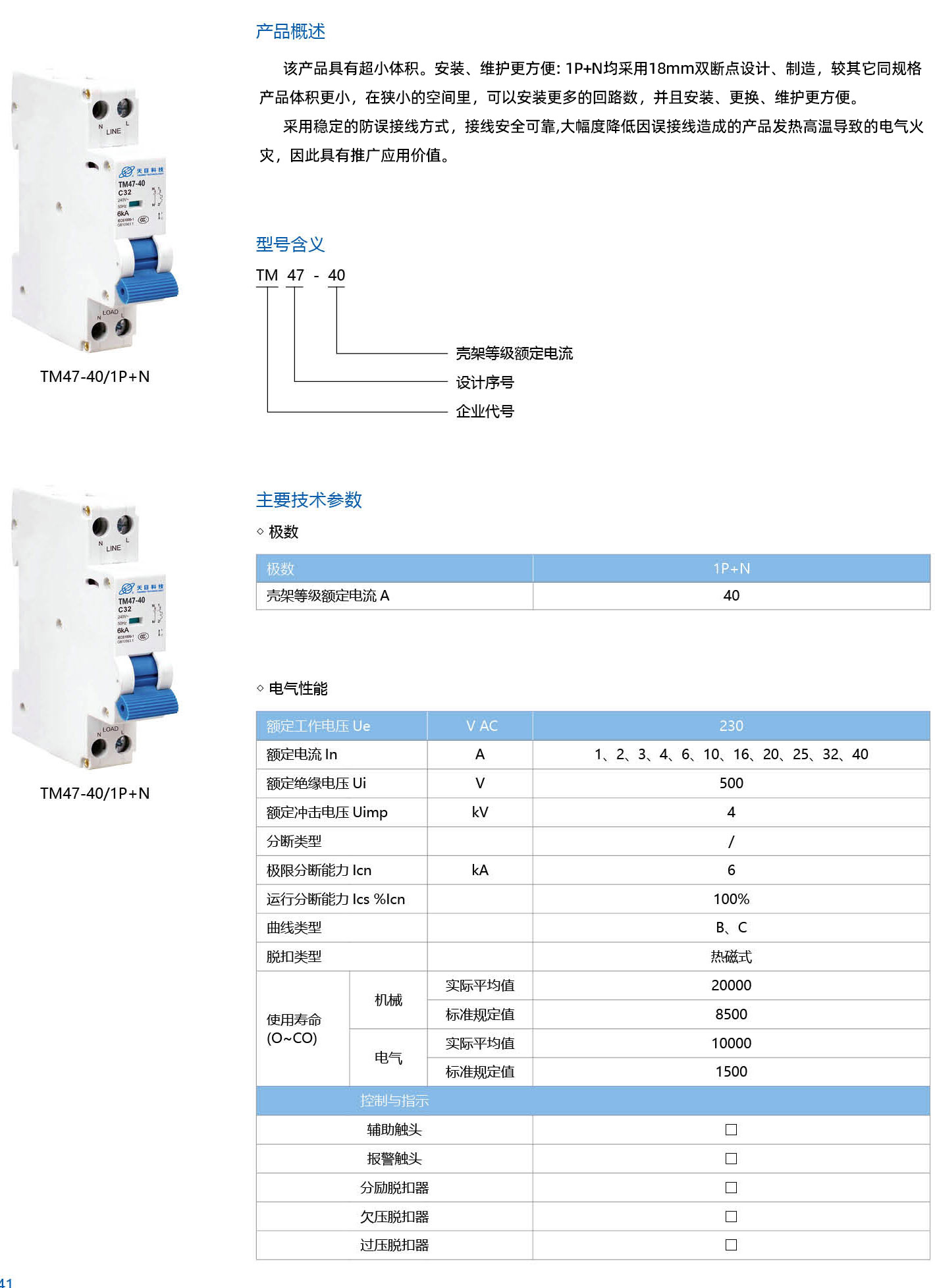 TM47-40系列小型斷路器(18mm/1P+N高分斷)