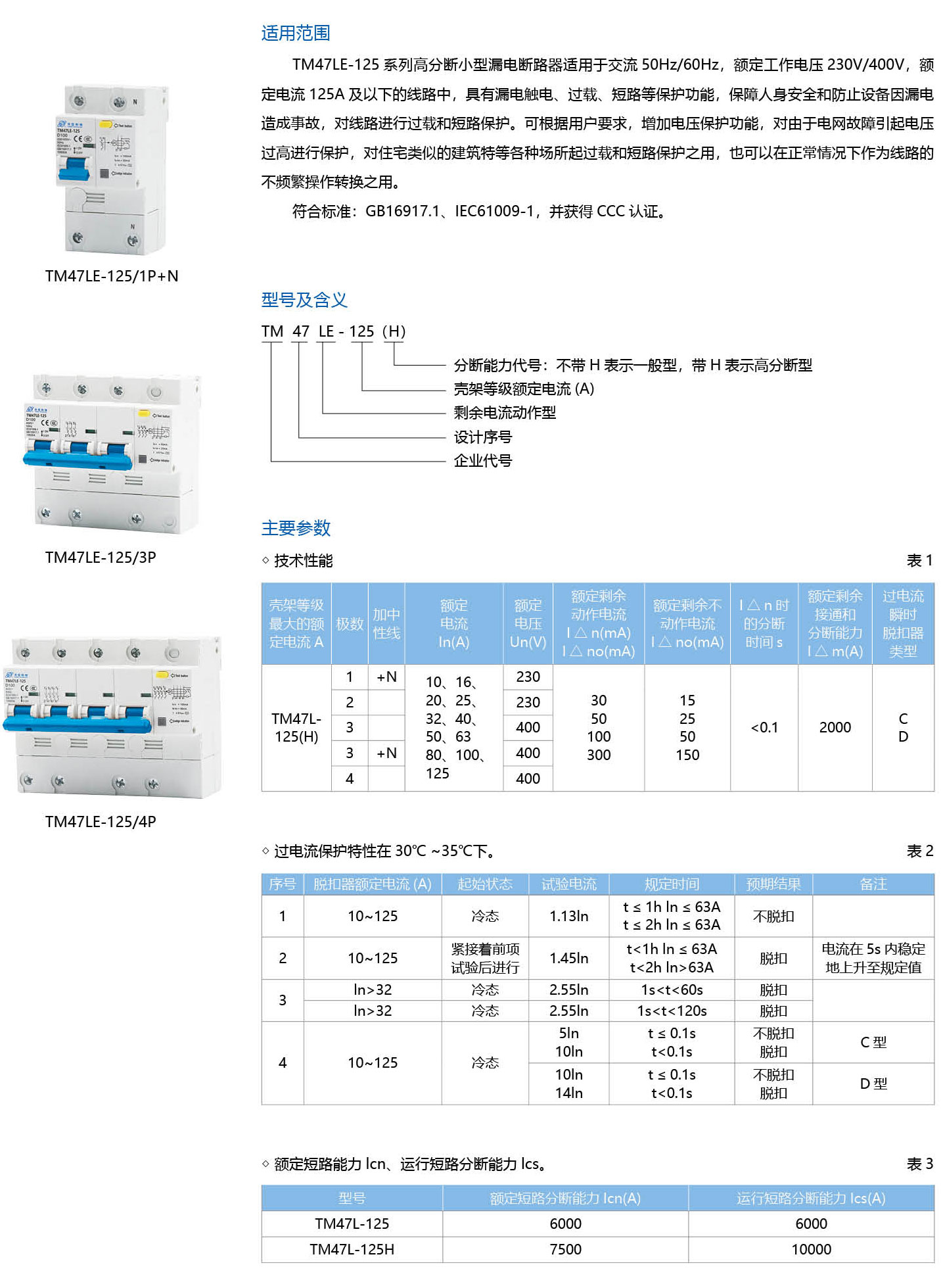 TM47LE-125系列漏電斷路器