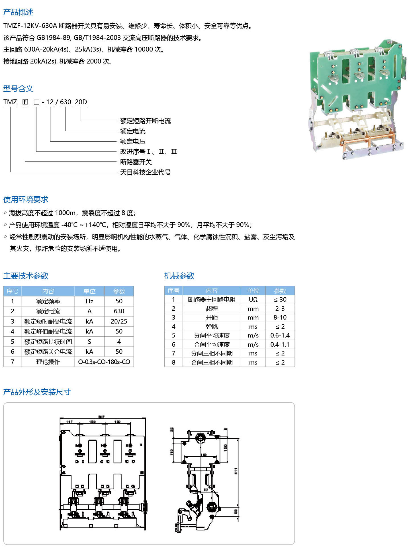 TMZF-12KV-630A充氣柜斷路器(帶隔離帶接地)