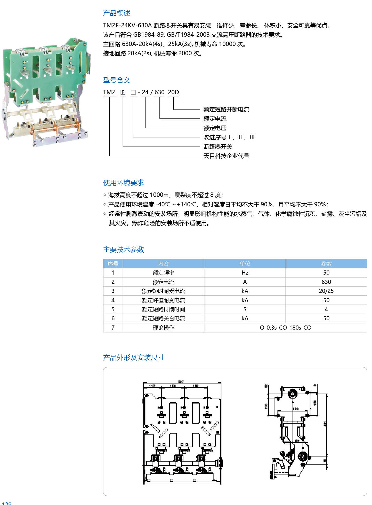 TMZF-24KV-630A充氣柜斷路器(帶隔離帶接地)