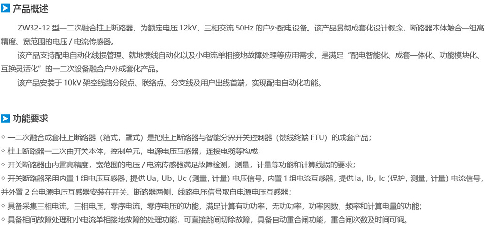 ZW32-12型一二次融合成套柱上斷路器