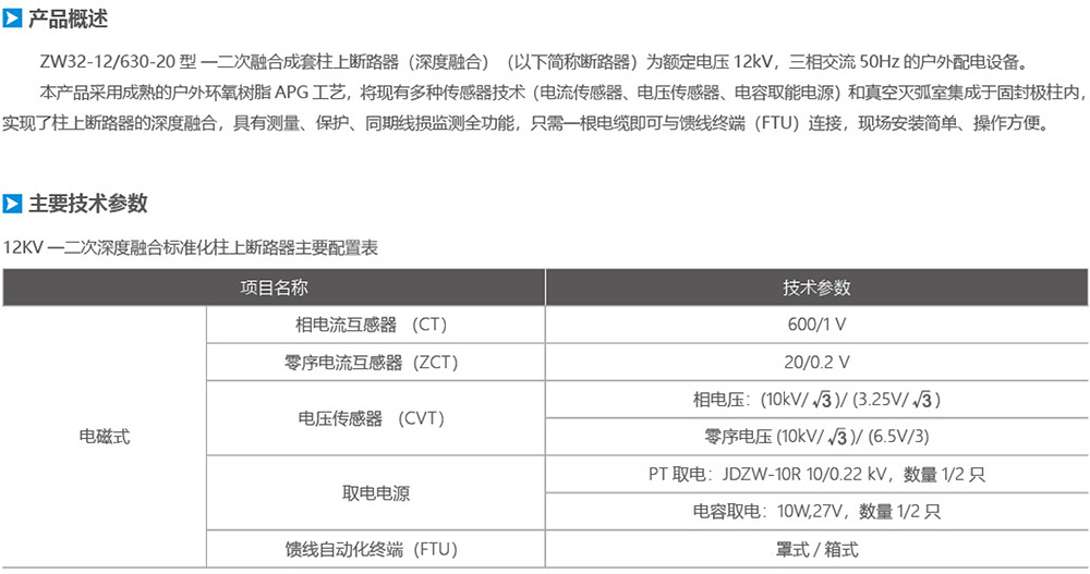 ZW32-12/630-20型一二次融合成套柱上斷路器(深度融合)