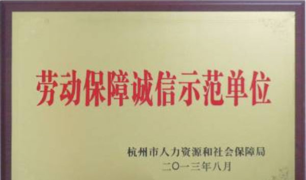 獲“杭州市勞動保障示范單位”
